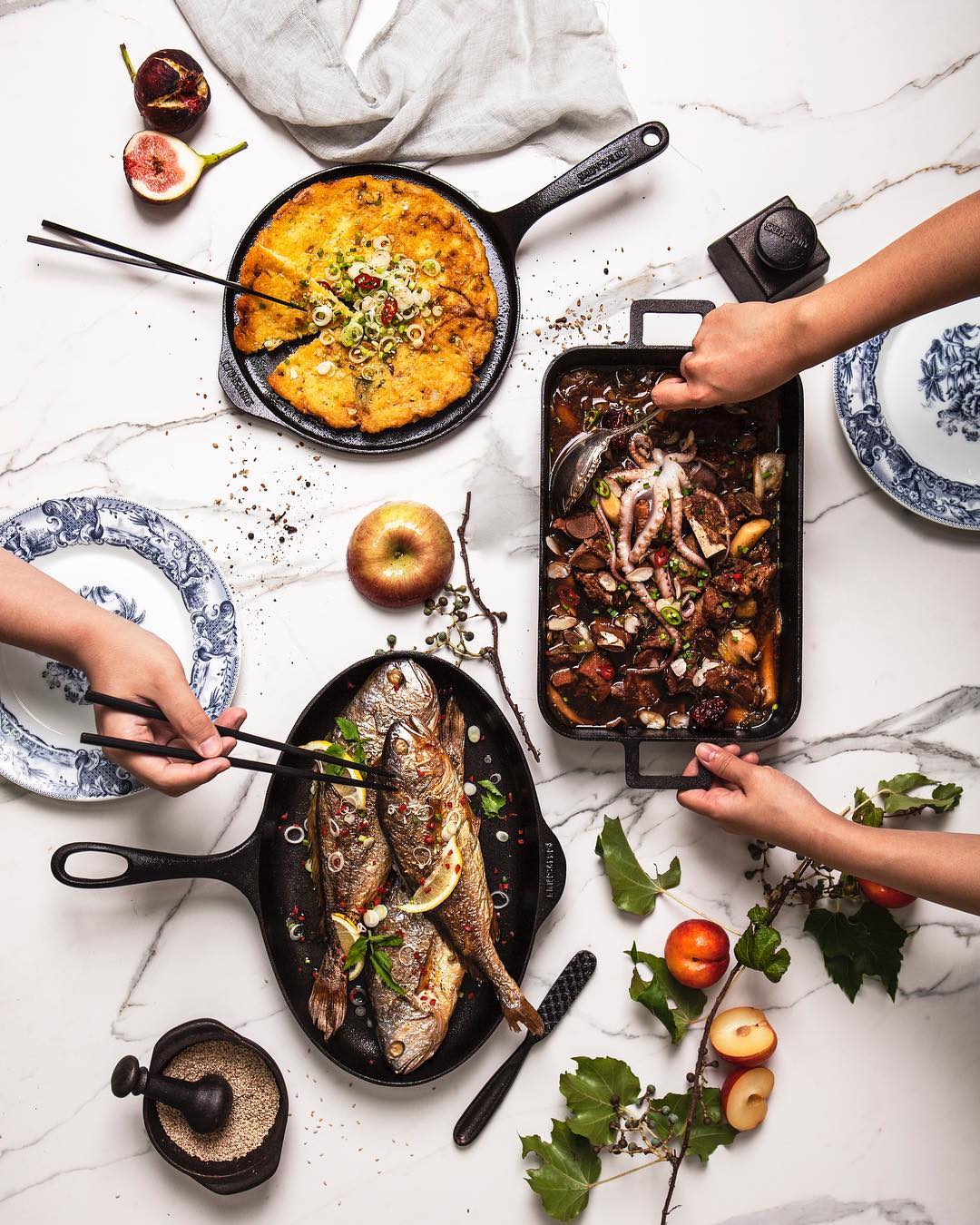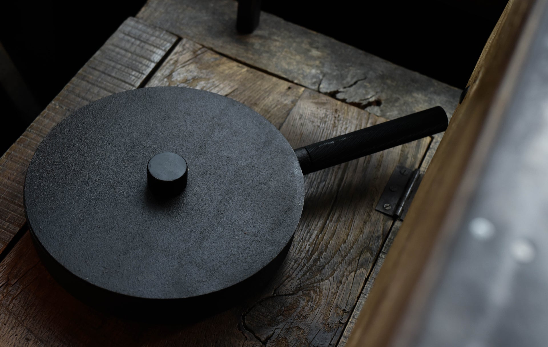 Minimalistisches Gusseisen mit massiven Aluminiumgriffen